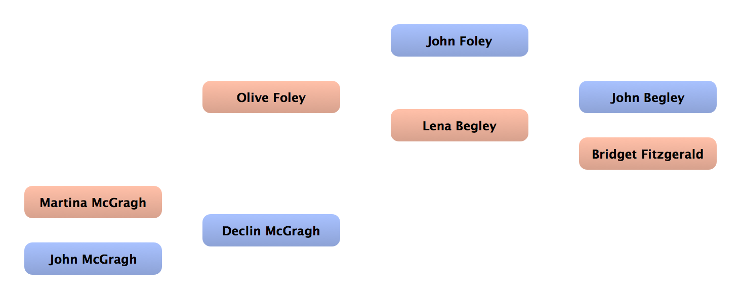 Elaine Walsh | 2nd cousin once removed (f) | | | | |