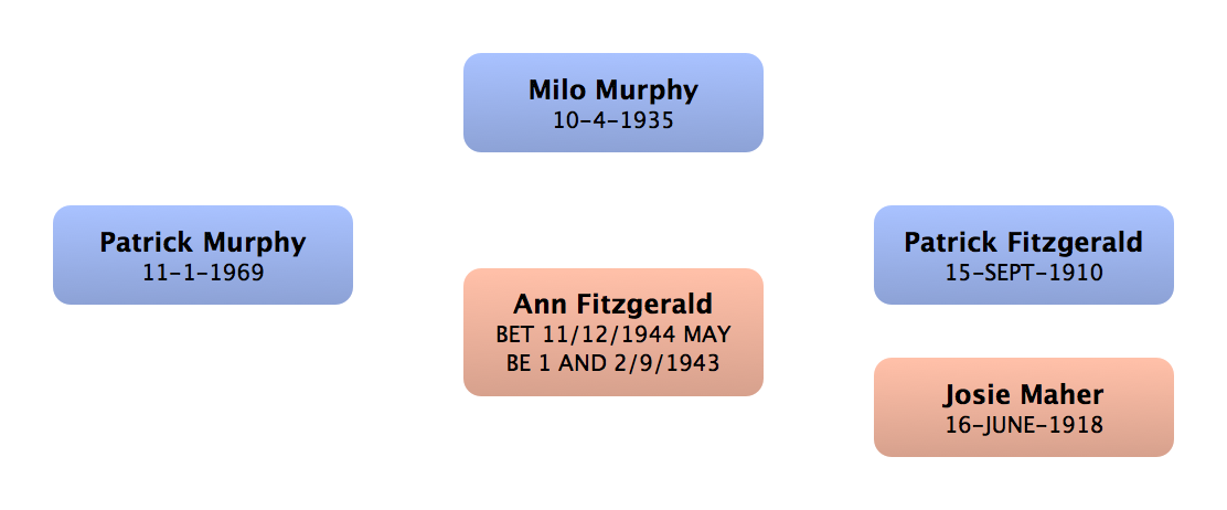 Biddy Fitzgerald | 1st cousin twice removed up (f) | | | | (Lived in England) |