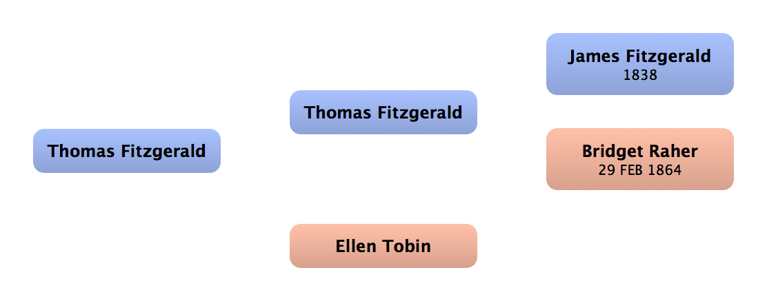 Patrick Fitzgerald | 1st cousin once removed (m) | | Shangan, Co. Waterford, Ireland | | |