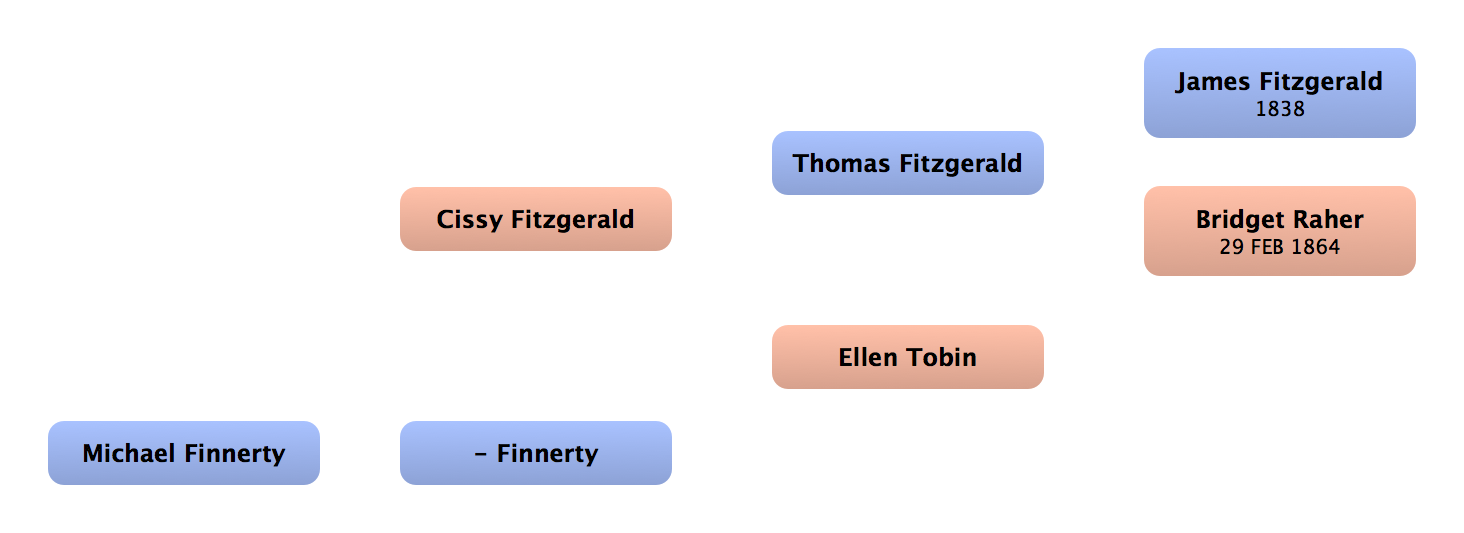 Eileen Fitzgerald | 1st cousin once removed (f) | | Shangon, Co. Waterford, Ireland | | |