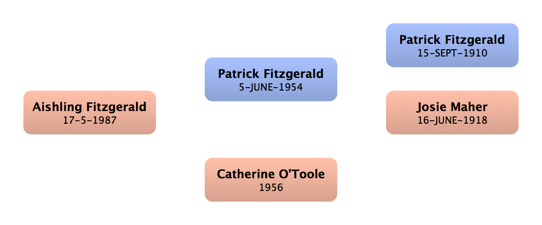 Biddy Fitzgerald | 1st cousin twice removed up (f) | | | | (Lived in England) |