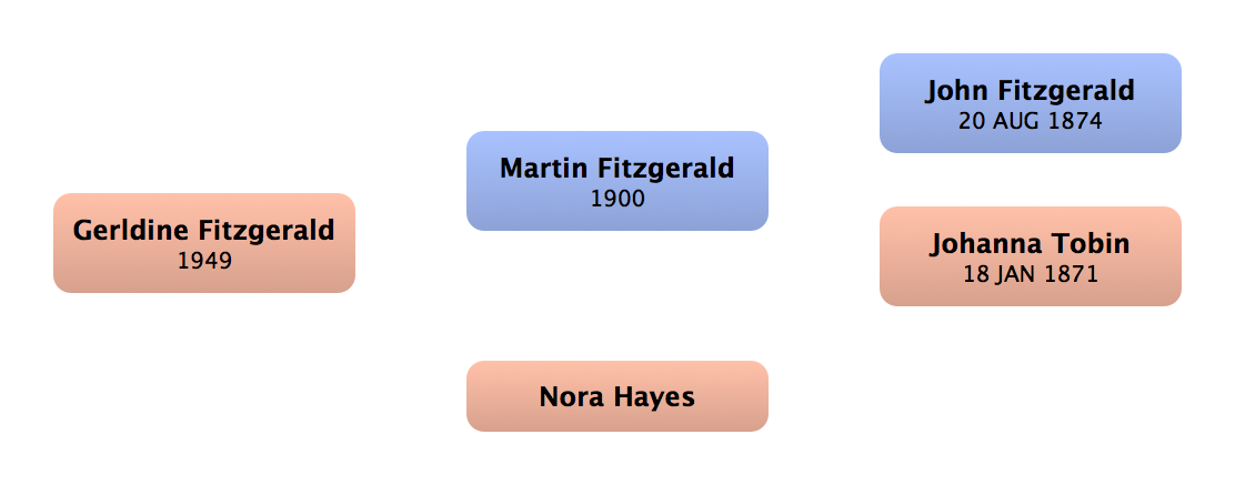 Biddy Fitzgerald | 1st cousin once removed up (f) | | | | (Lived in England) |