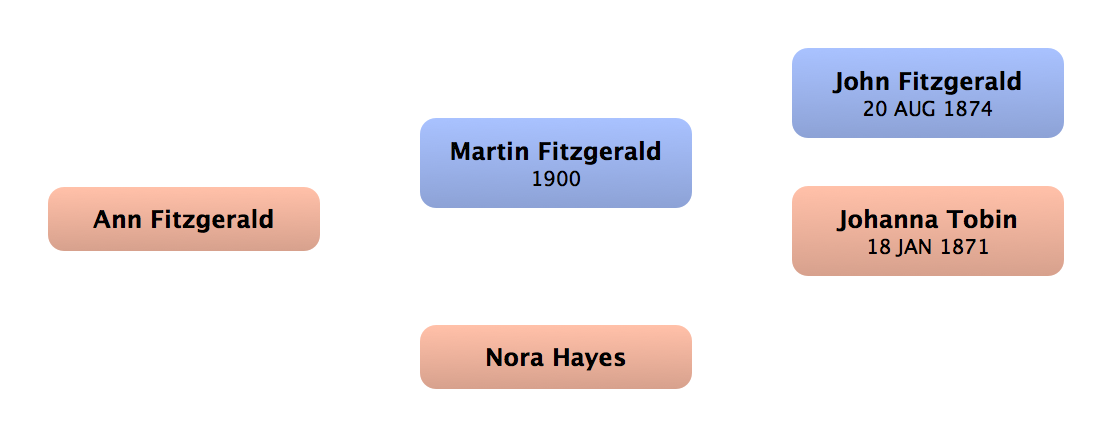 Martin Fitzgerald | 1st cousin once removed up (m) | | | | St. Otterans, Co. Waterford, Ireland |