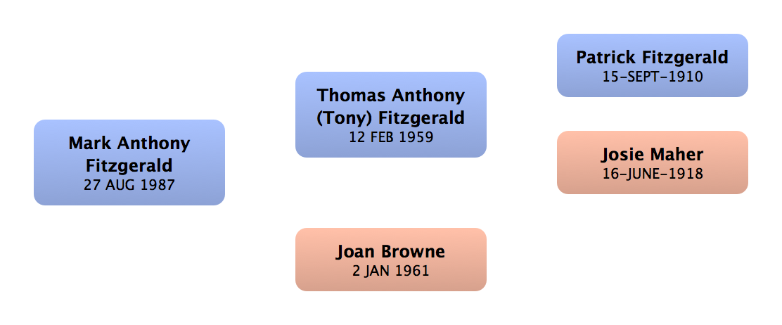 David Fitzgerald | First cousin (m) | 17-7-1984 | Boherduff, Clonmel, Co. Tipperary, Ire. | | |