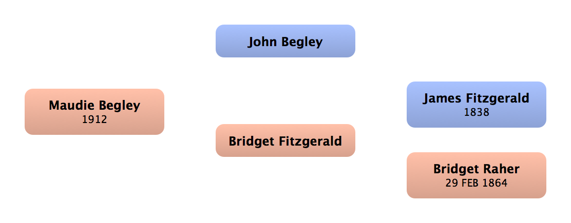Biddy Fitzgerald | First cousin (f) | | | | (Lived in England) |