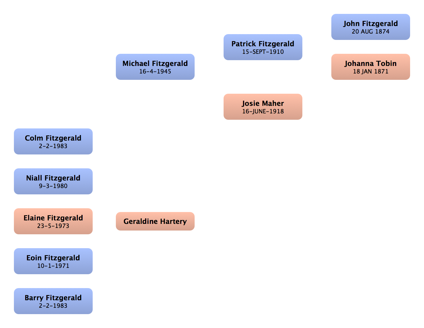 Joan Fitzgerald | First cousin (f) | | | | |