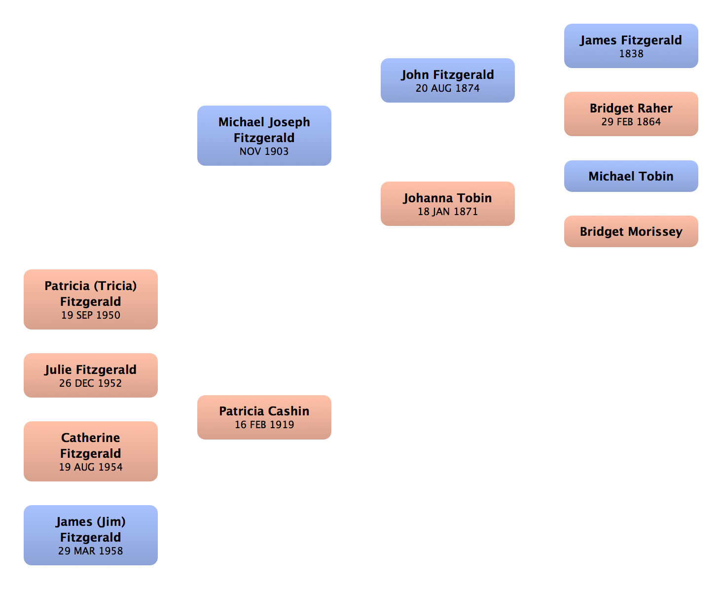 Biddy Fitzgerald | First cousin (f) | | | | (Lived in England) |