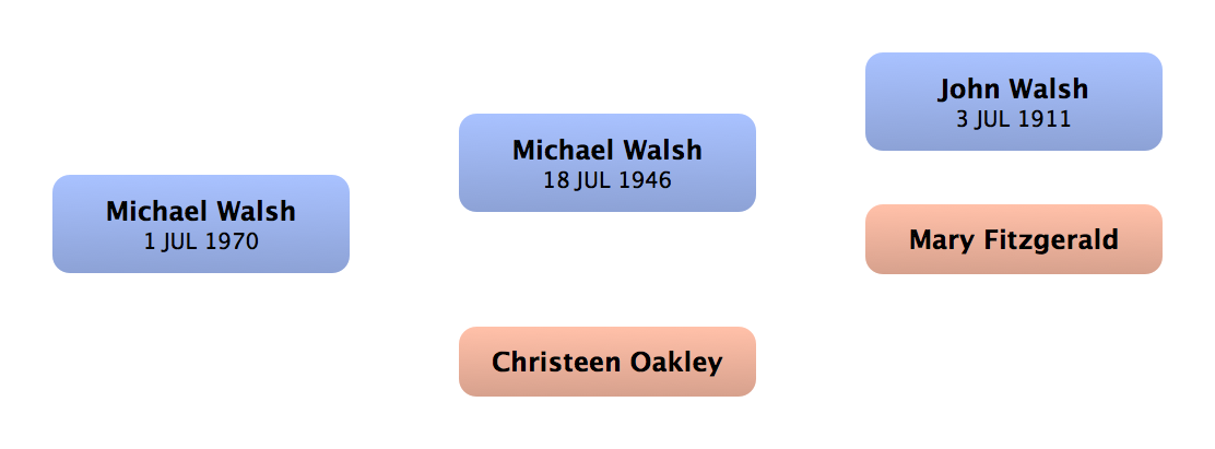 Niall Walsh | First cousin (m) | 1981 | Ballyduff, Co. Waterford, Ireland | | |