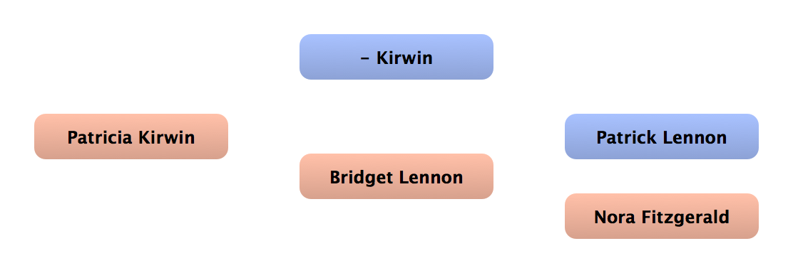 Christina Quinlan | Third cousin (f) | 1976 | Killelton" | | |
