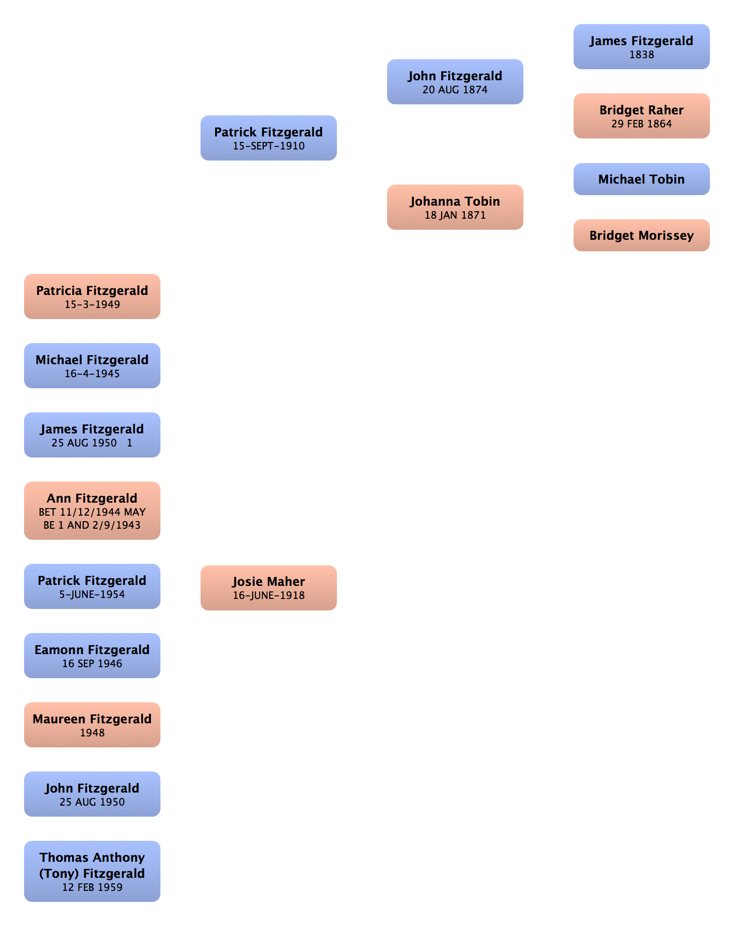 Biddy Fitzgerald | First cousin (f) | | | | (Lived in England) |