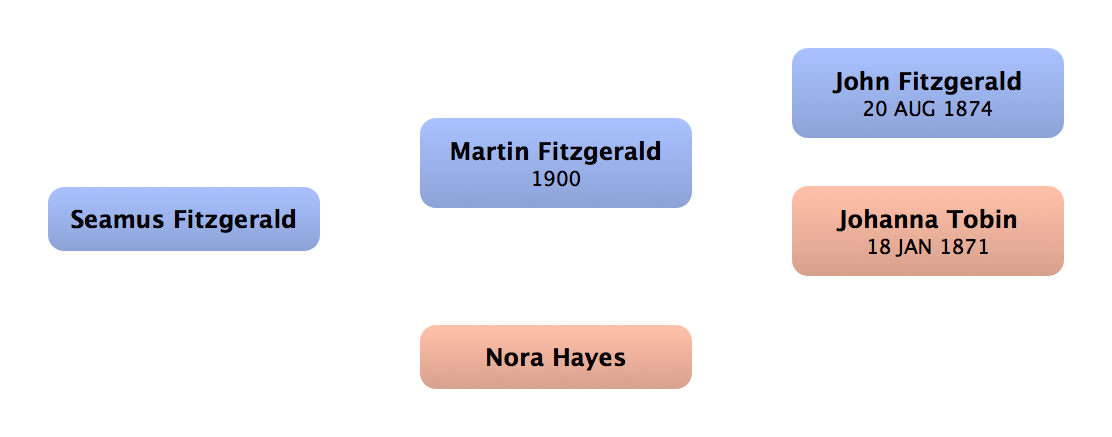Biddy Fitzgerald | 1st cousin once removed up (f) | | | | (Lived in England) |