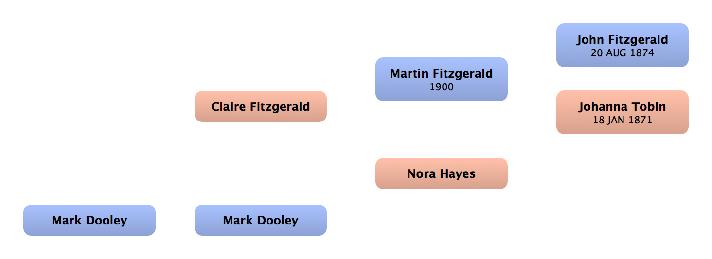 Biddy Fitzgerald | 1st cousin once removed up (f) | | | | (Lived in England) |